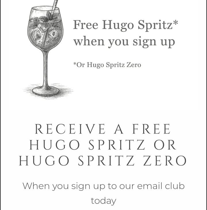 Sign up, sip, enjoy. Join our email club today and receive a free Hugo Spritz or Hugo Spritz Zero on us. Refreshment is just one signup away. Sign up via the link and claim your drink while stocks last. www.thehavelock.com