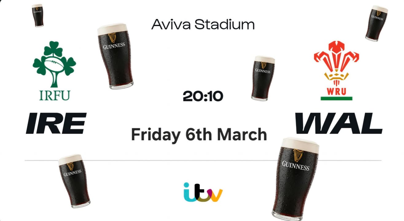 Six Nations Rugby — Live at The Havelock Arms Ireland v Wales Friday 6th March Join us for the Six Nations, shown live. Guinness on pour Come down, get comfortable, and enjoy the rugby. 🏉